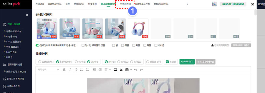 상세설명, 썸네일, 옵션 이미지별로 구분할 수 있습니다.