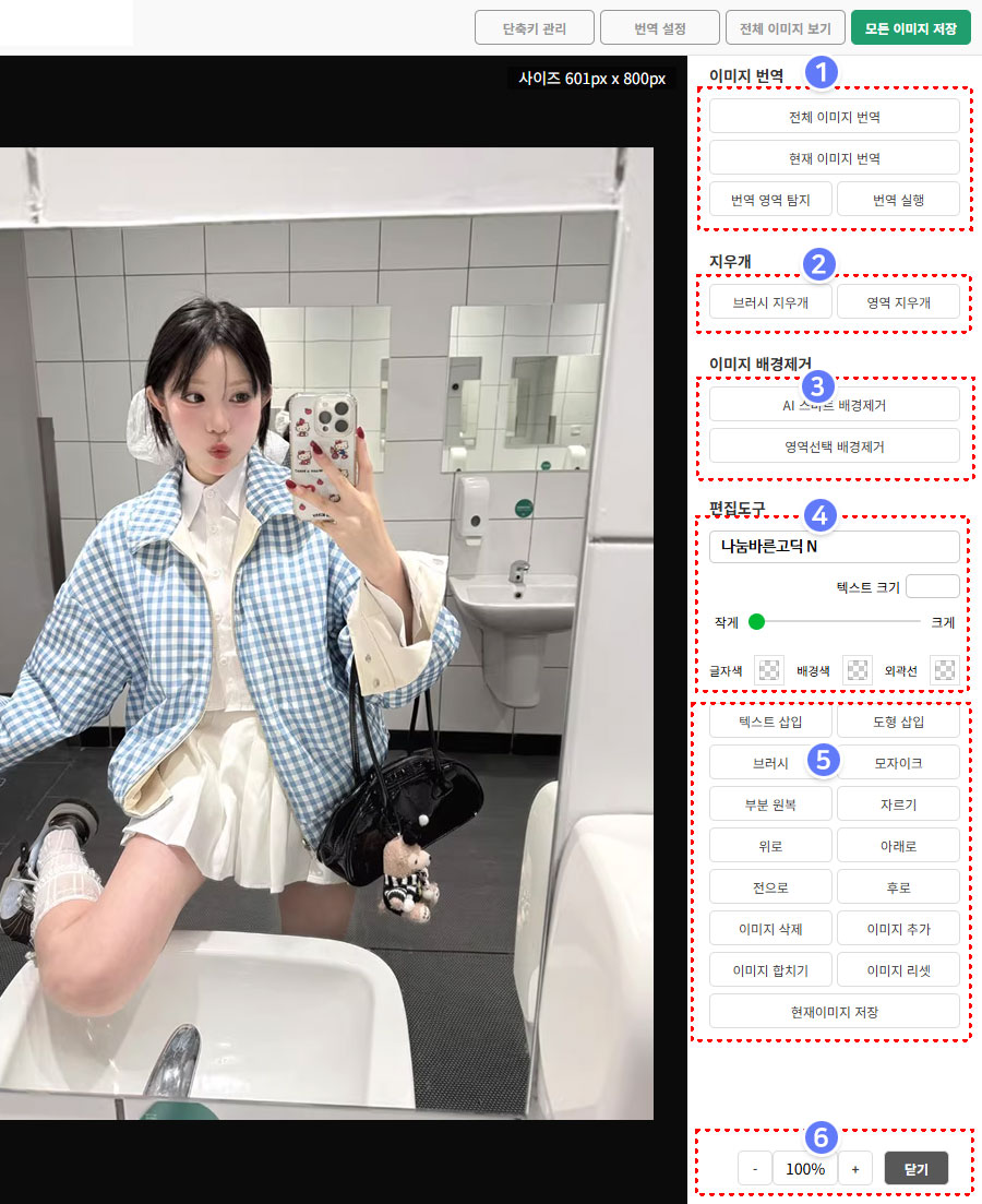 전체이미지 번역 또는 부분번역을 실행 할 수 있습니다.