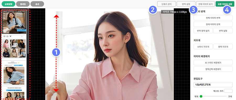 이미지 번역 설정 설정 및 이미지 저장 기능 적용