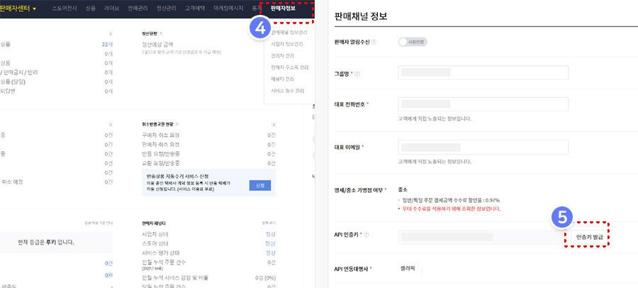 우측 상단의 판매자정보를 클릭하세요.