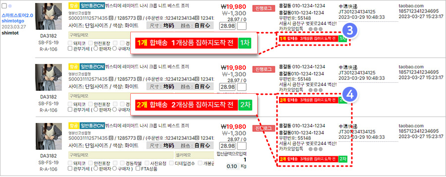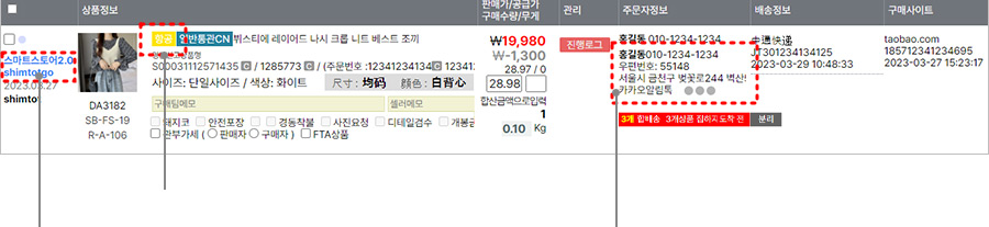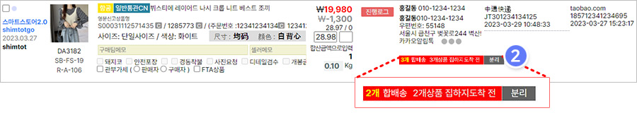 빨간색 합배송 바를 클릭하시면, 합배송되는 주문만 따로 확인할 수 있습니다.