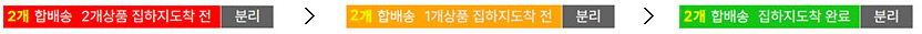 오렌지인 경우 합배송 상품 중 하나이상 집하지에 도착 했고 아직 배송 중 상품 있다는 의미 입니다.