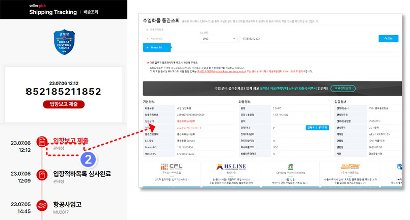 등록한 운송장 번호를 통해 셀러픽에서 상품을 추적하여 입고를 관리합니다.