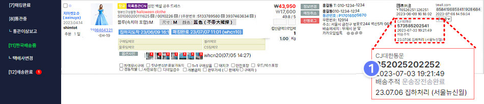 경동택배인 경우, 통관 완료 후 익일 운송장 번호가 업데이트됩니다.