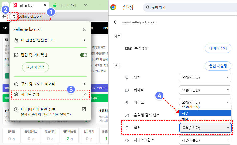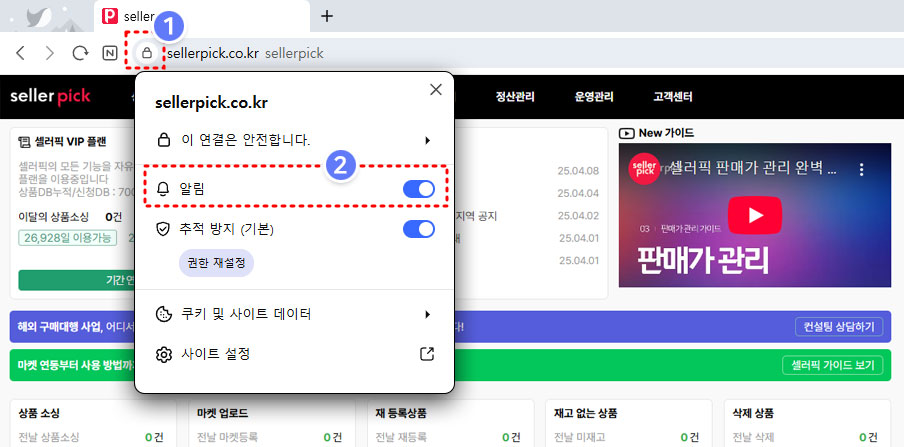 a.sellerpick.shop 주소는 푸쉬 알림이 안되니 접속 URL을 변경해 주세요.