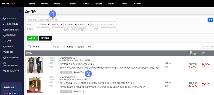 상품관리 > 신규소싱상품 메뉴로 이동 합니다.
