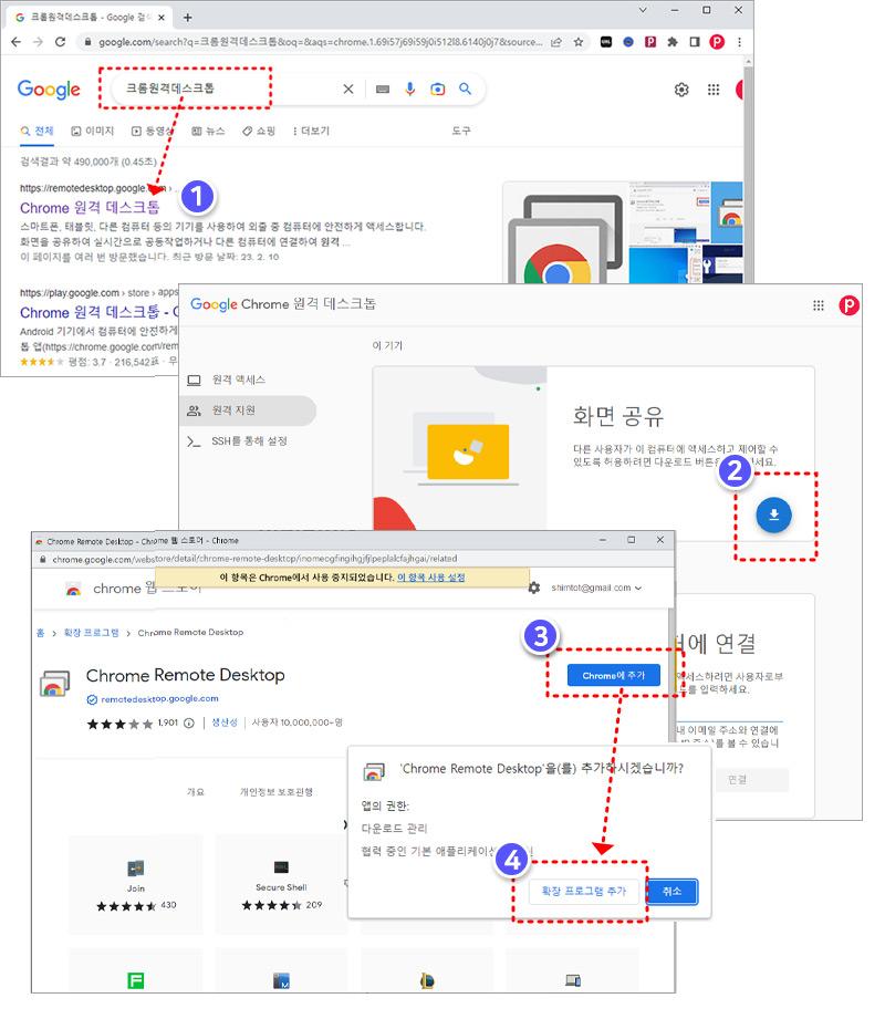크롬 브라우저에서 Google에 접속하여 "크롬 원격 데스크톱"을 검색하세요.