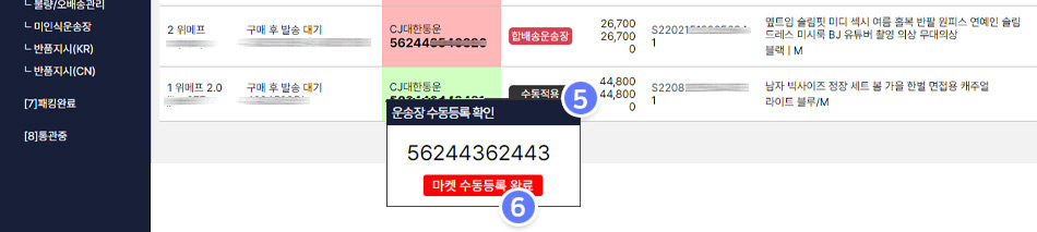 마켓에 접속하여 운송장 정보를 직접 붙여넣기(Ctrl + V) 하여 등록해 주세요.